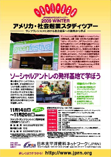 全米からあつまる環境ビジネス、NPO、コミュニティの活動家が大結集するグリーンフェスティバル。2002年にスタートし、今年で7年目となるこのイベントは、主催者のNPOが環境や社会的正義の観点からきびしくチェックし、審査をパスした社会的責任のあるビジネスのみが参加できます。アメリカのエコ・グリーンビジネスの最新動向や社会的責任投資について学んだり、社会派ミュージシャンによる生演奏やオーガニックの食事も楽しめるようになっています。別館では環境専門家や地元の活動家によるスピーチやセミナーも開催し、昨年のイベントでは、今年3月に米国環境問題諮問委員会の特別顧問として任命された、ベイエリアの環境運動家ヴァン・ジョーンズ氏(「The Green Collar Economy」の著者)も講演者の一人でした。